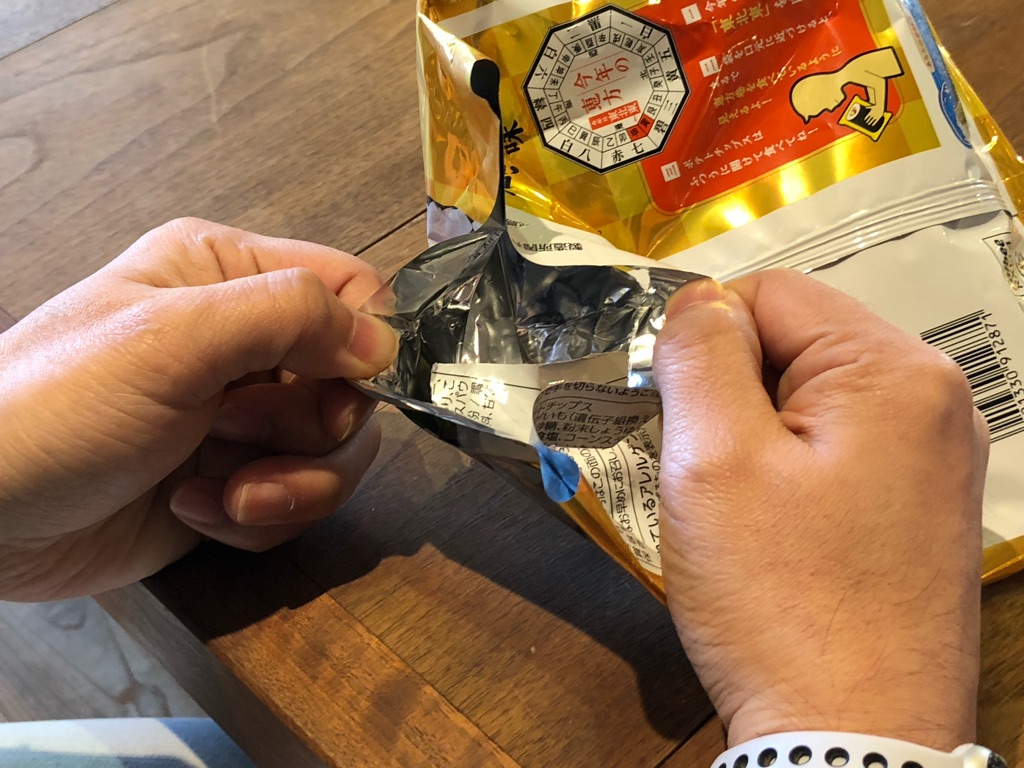 接着線が思いのほか強く、袋が裂けちゃった。これは中の食品が減った分、ハサミで切り落として開けるのが正解ですかね。