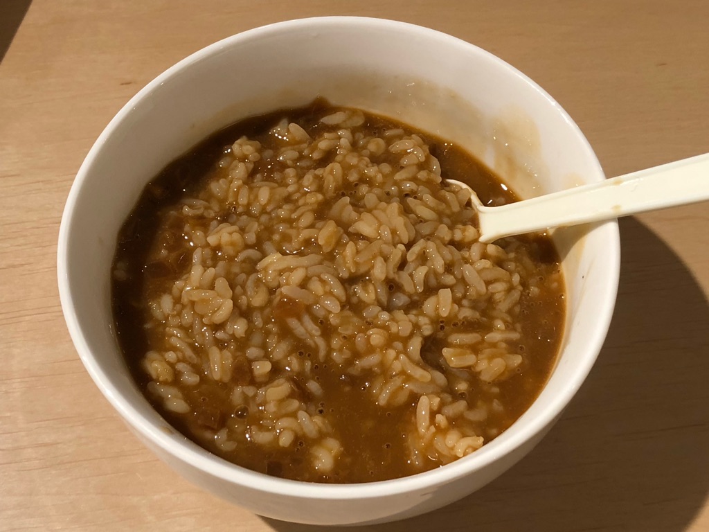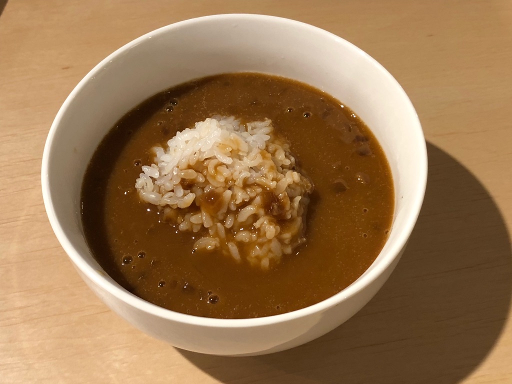朝ごはんにしようと思ったのは、シャバシャバで軽く一膳のライスにかければ、洋風お茶漬けみたいにならないかなーという目論見もあったんですよ。