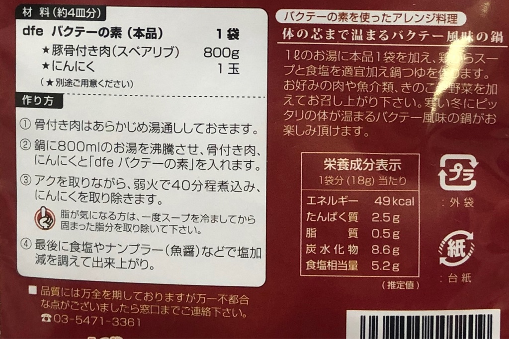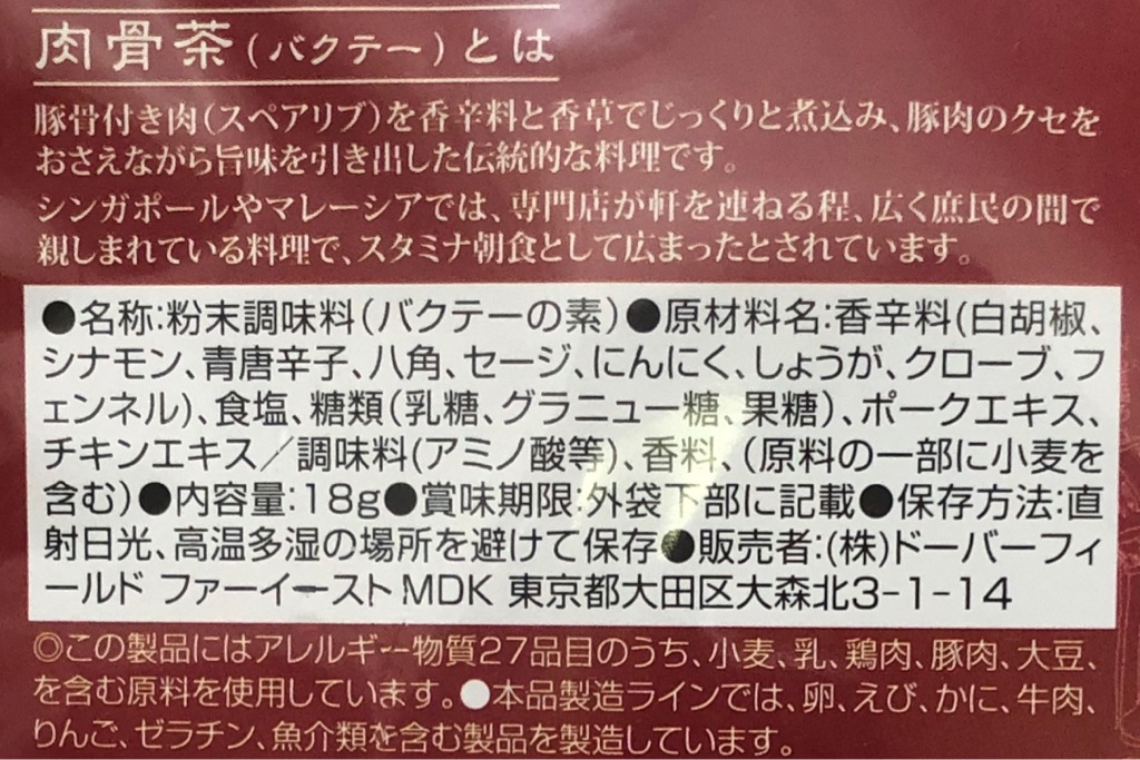 DFE 肉骨茶(バクテー)の素 18g