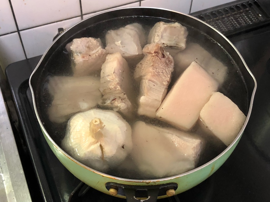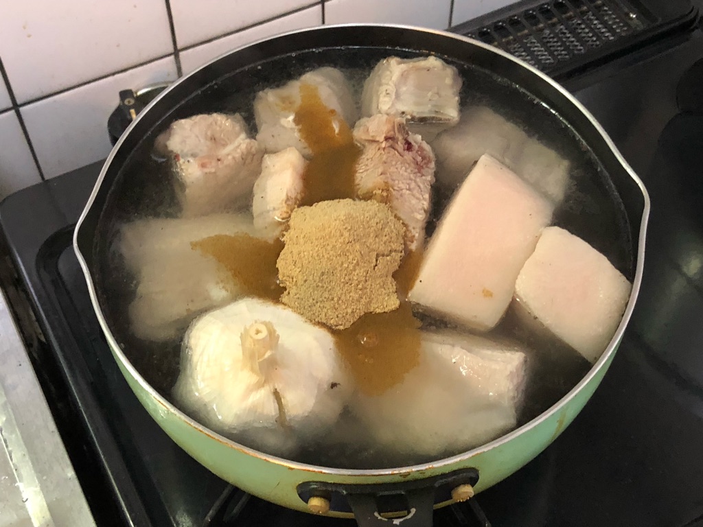 シンガポール・マレーシアの名物料理「肉骨茶(バクテー)」の素をKALDIで発見。豚スペアリブとニンニクと一緒に煮込むだけ!