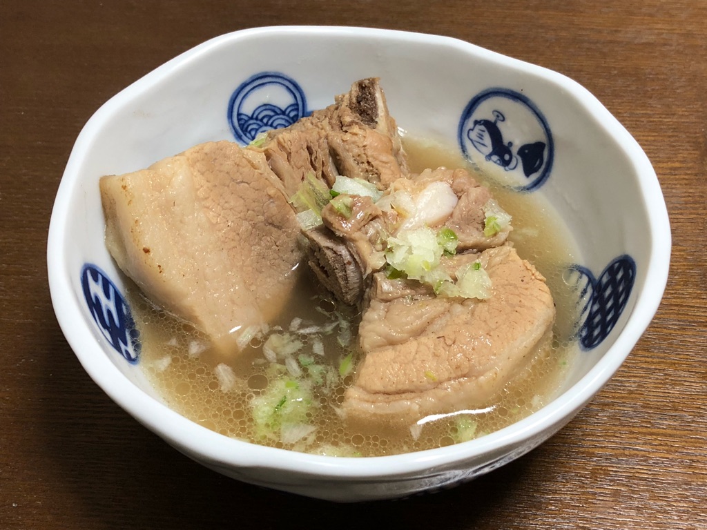 「バクテーの素」を使ってただ煮込んだだけなので、これがシンガポールやマレーシアのリアルな肉骨茶に比べてどうかという話はできませんが、そのままお酒のアテに良さげですし、白いご飯のおかずにもなりますし、このスープをそのままに中華麺やそうめんを入れて麺料理としても良さげ。