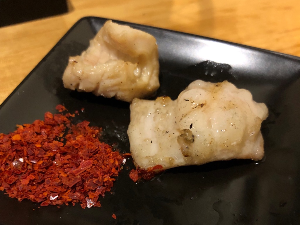 卓上の一味を使って、辛味を足していただきますよ。ふくふくとした脂、その甘さを引き立てる塩味。タレよりも、シンプルな味わいでホルモンを食べられる。それはホルモンの新鮮さ、さばく技術の高さの証明にほかなりません。