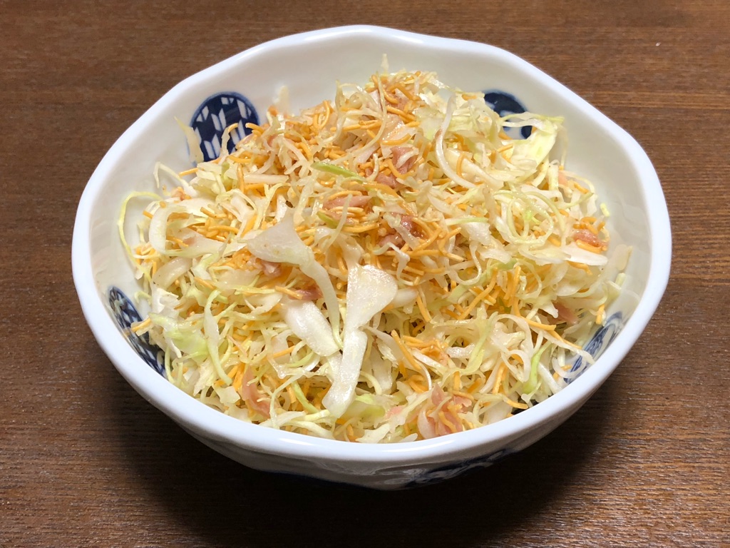 粉末スープはソース味なので、キャベツとも相性がいいはず。