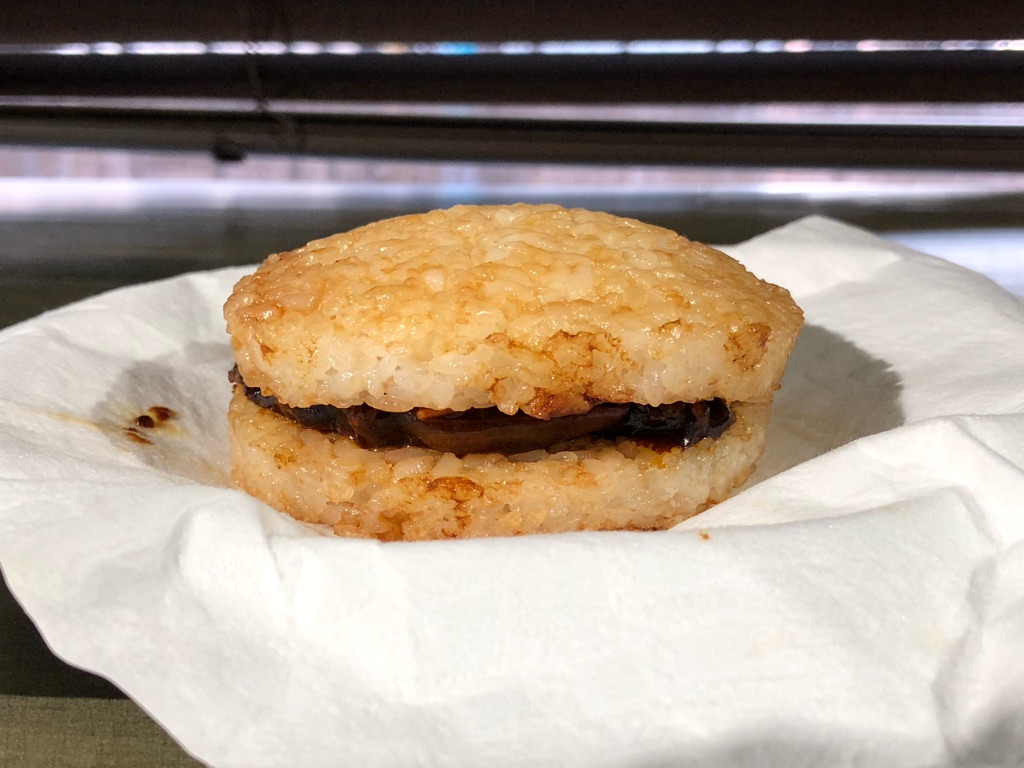 ライスバーガーって、どうせおにぎりじゃん……みたいな気持ちになっちゃうので、めったに買うことも、某ハンバーガーチェーンでもオーダーすることもないんですけど、これは気になって買ってしまいました。
