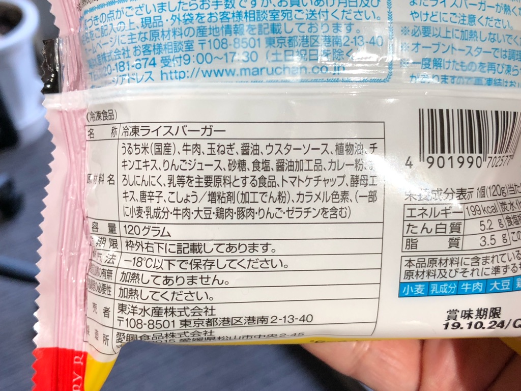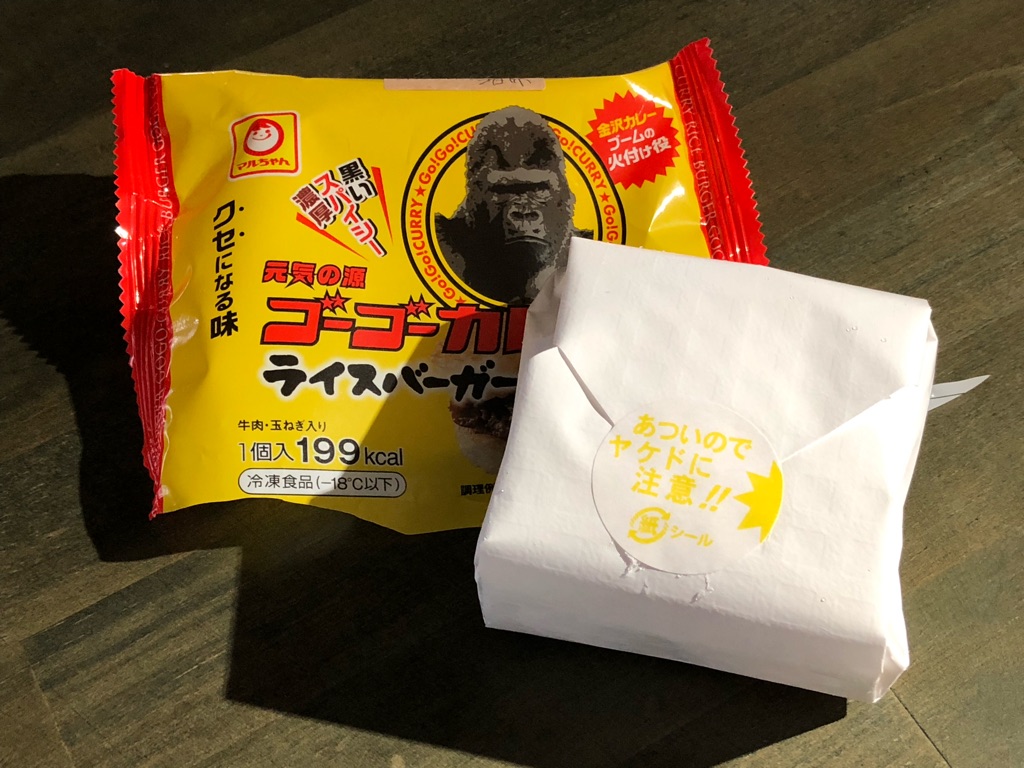 「ゴーゴーカレー監修 ライスバーガーカレー」は、調べてみたら2018年3月に新発売した商品。発売からもう1年ちょい経ってしまっていますが、前述のとおりライスバーガー敬遠気味だったイハラさんが、ようやくその存在に気づいた。