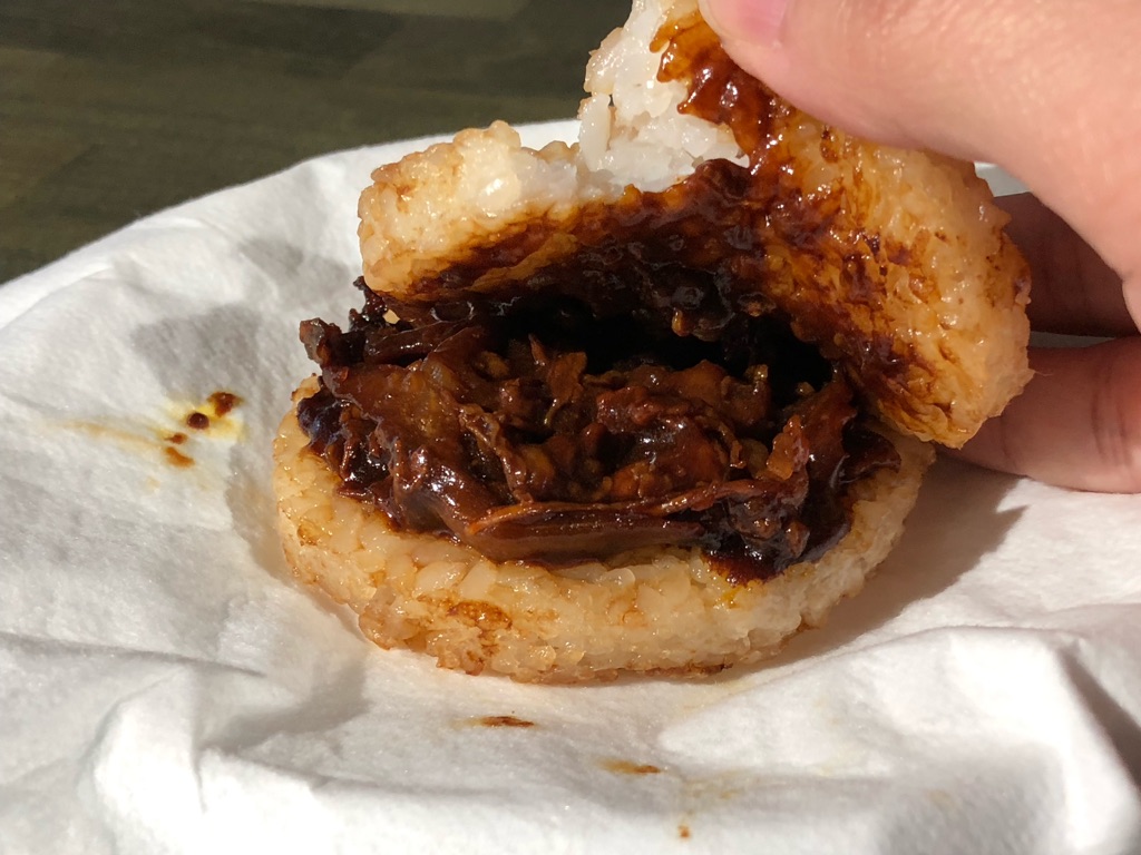 そしてその形状は手づかみで食べられる、手が汚れない。ライスバーガーがどうというよりは、これ、カレーライスの理想的な姿のひとつでは!? と感心したので、今回紹介しました。