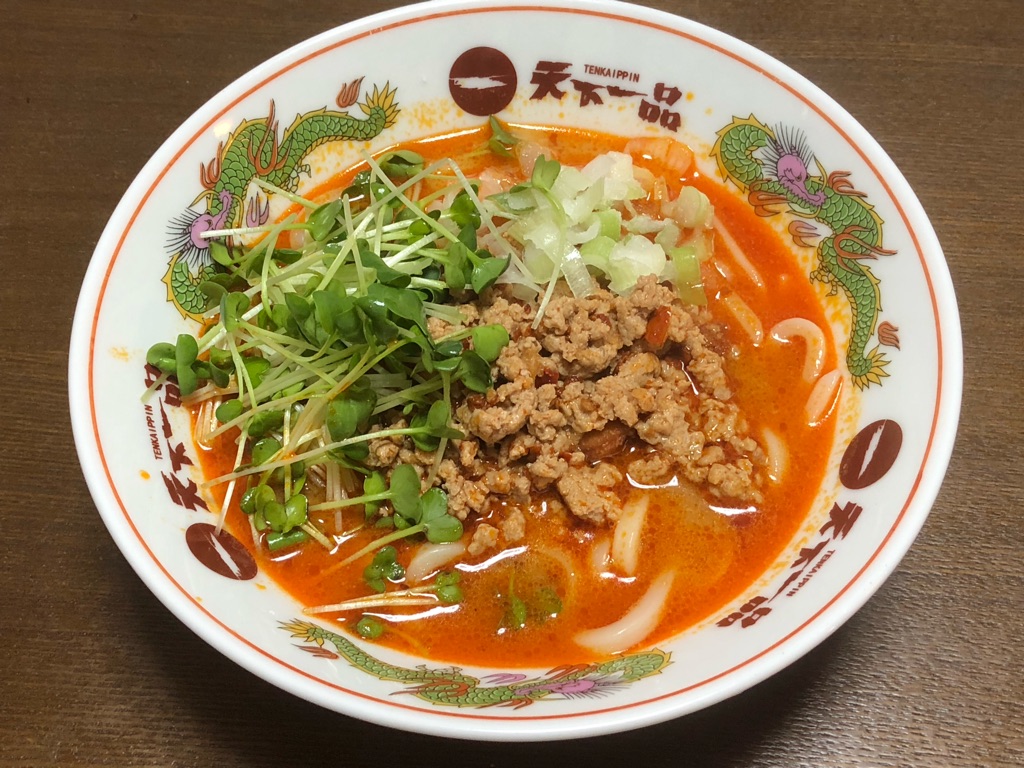 挽肉50gを炒め、無添加自家製ピーナツバター大さじ2、ラオガンマ大さじ1、味覇大さじ1を湯100ccで溶いた汁と合わせ、塩胡椒おろしニンニクで味を整えたのち、茹でたうどんにぶっかける。ネギとカイワレをトッピングし、汁なし担々麺風うどんの完成。よくかき混ぜてウマー。ご馳走さまでした。 pic.twitter.com/HVmfpg8UUJ