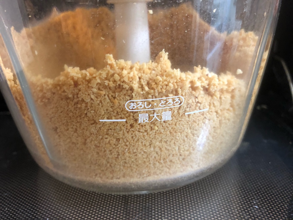 (※ピーナツの量が少ないと刃の回転によって飛び散って回らなくなるので、ずっと刃に触れまわり続けるだけの量が必要です。)