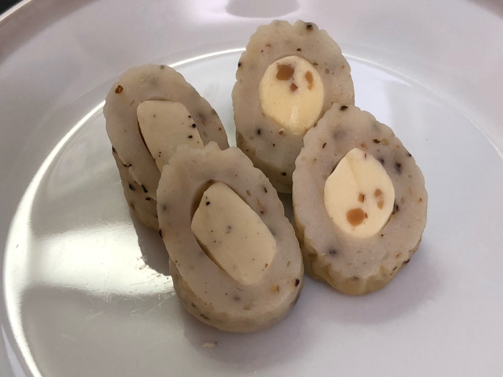 やわらかちくわとチーズでは、ちょっと物足りなかったマイルド食感に、アーモンドのカリカリ感がまたうまい。