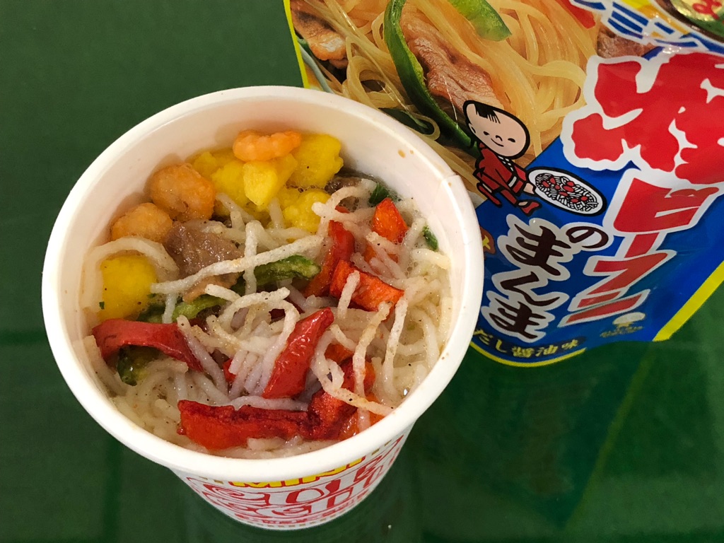 ビーフンはさすがにつるしこ感が失われますが、カップヌードルの麺と一体化して、これはこれでおいしい。