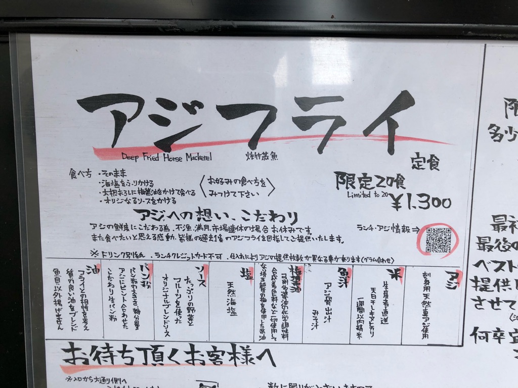 こちらはランチタイムに、“アジフライ専門店”になります。