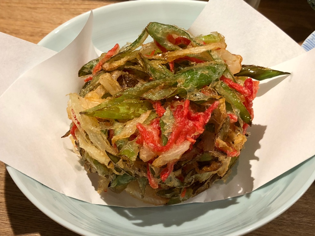 日替わりは「紅生姜かき揚げ」(300円)。大人気というからには、当日この日限りというよりも、何回か提供されているのでしょうね。