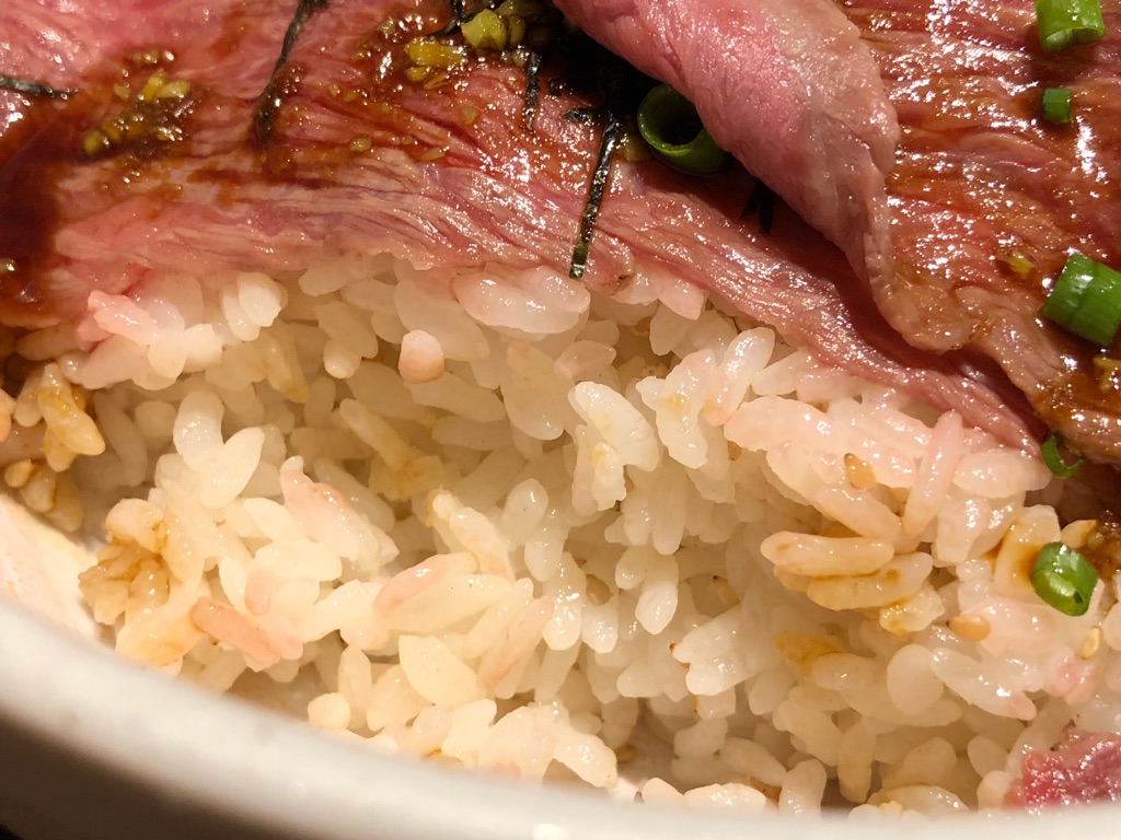 薄切りなので、とろける黒毛和牛の味わいはまた格別。そのまま食べてよし、メシを包んで食ってよし。