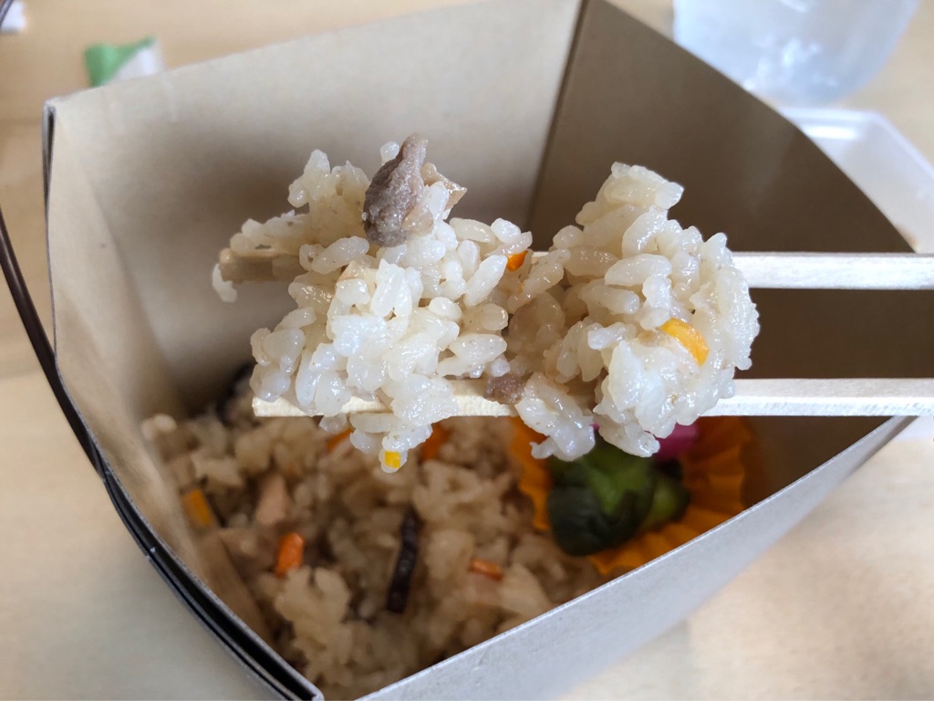 この日渡は「鴨ハンバーグ丼」を買いましたが、ほかにも鴨肉や野菜と共に鴨出汁で炊いた「鴨めし」や、ローストビーフ丼風にいただく「鴨ロースト丼」、鴨焼き肉とネギを添えた「鴨が葱しょって丼」などを販売。