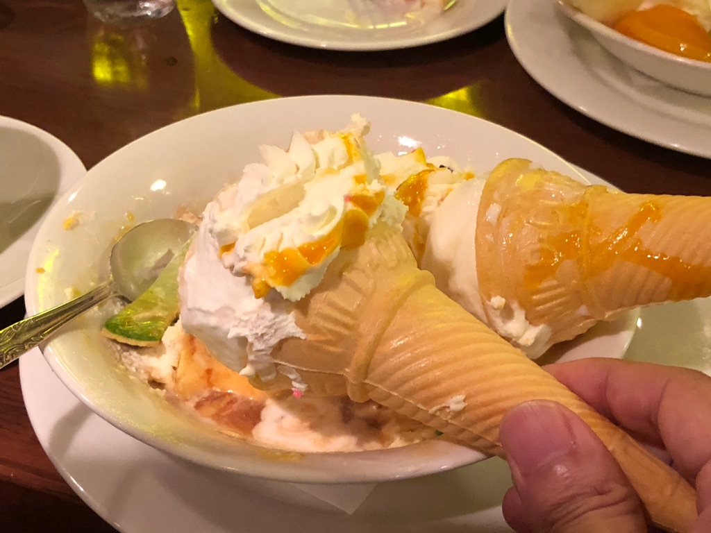 あ、これ、種類が違う。同じ白のアイスだが、2つのアイスはバニラ味と、ヨーグルト味。2つの味が味わえるので、このボリュームでも飽きずに食べられる。
