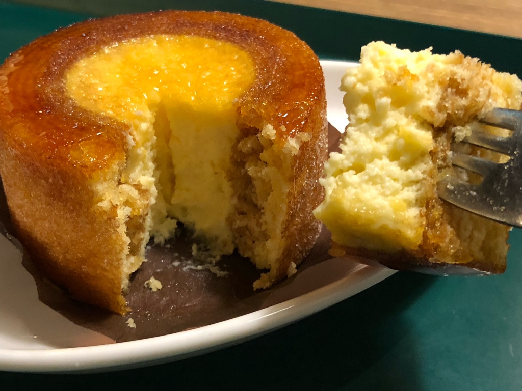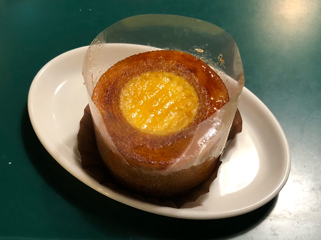 そういえば先日、こんなバウムクーヘンを紹介しました。「Tokyoねこバウム」。こちらは何もバウムクーヘン、丸くなくてよくない? と、型抜きして断層を楽しむものになっていましたが、今回の「ブリュレ in バウム」は、バウムクーヘンの“穴”に別のスイーツを埋めるという発想で来た。