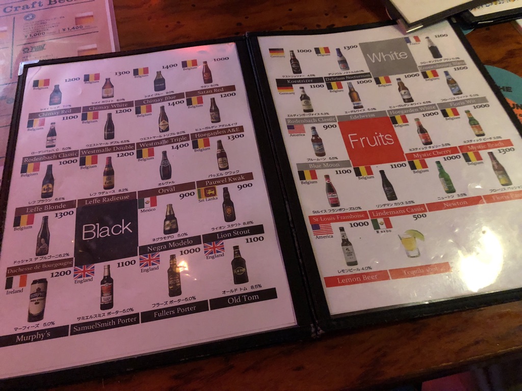 4ページ以上にも及ぶビールのメニュー表には、世界各地の瓶ビールが、その名前と写真と共に並んでいます。その数、100種以上。