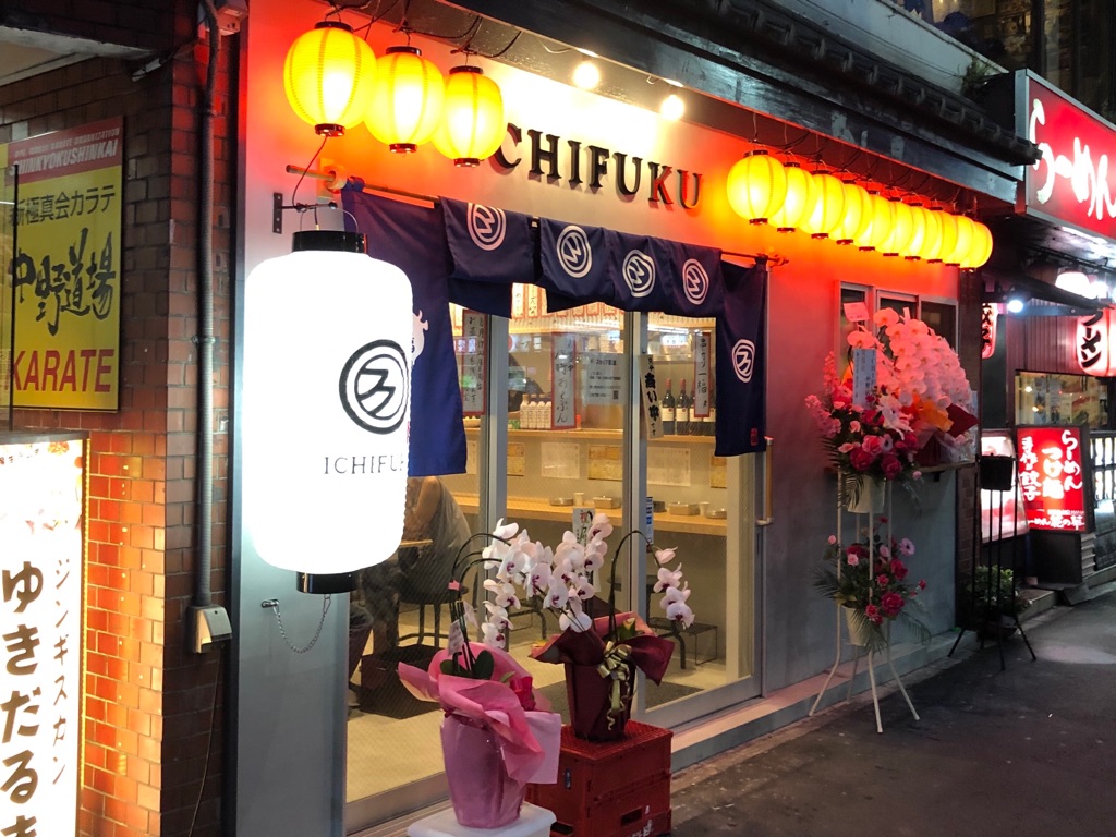 中野駅南口、ジンギスカンゆきだるまの下。開店祝いの花輪の出ている新しいお店を発見。