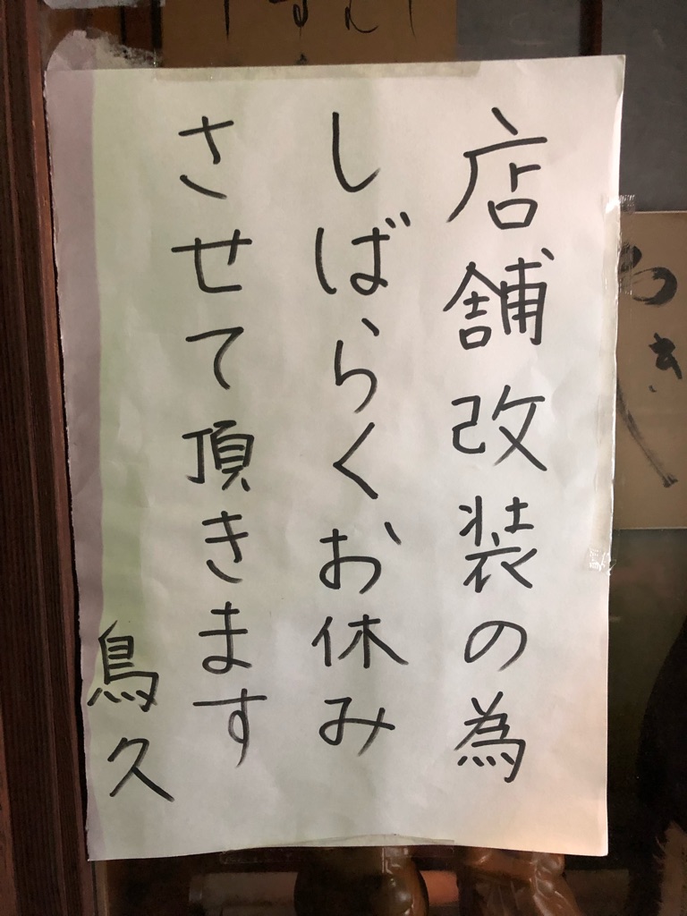 【阿佐ヶ谷ニュース】老舗焼鳥「鳥久」リニューアル休業中