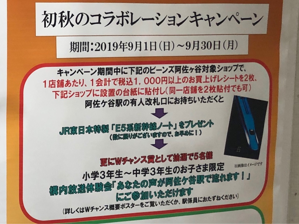 規定の年齢のお子さんがいるパパ、ママ。別に阿佐ヶ谷駅利用者じゃなくても、阿佐ヶ谷駅併設ビーンズ阿佐ヶ谷でのお買い物で応募できます。