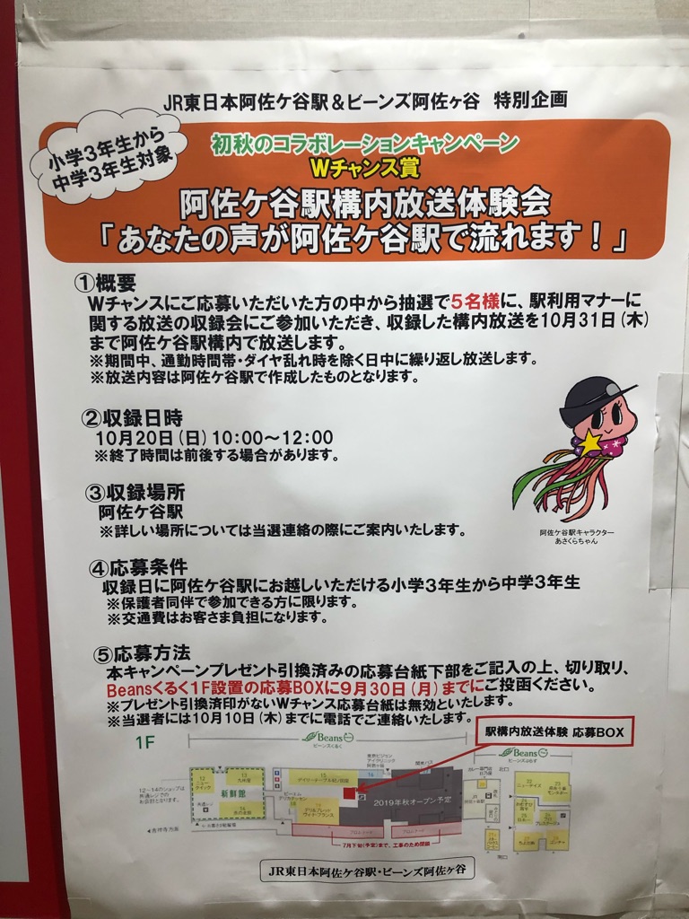 キミの声が阿佐ヶ谷駅の正式なアナウンスとして放送されるぞ!(ただし小3〜中3に限る)