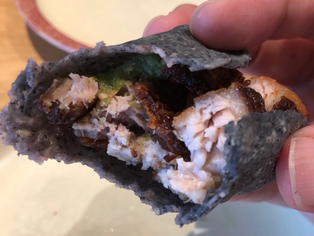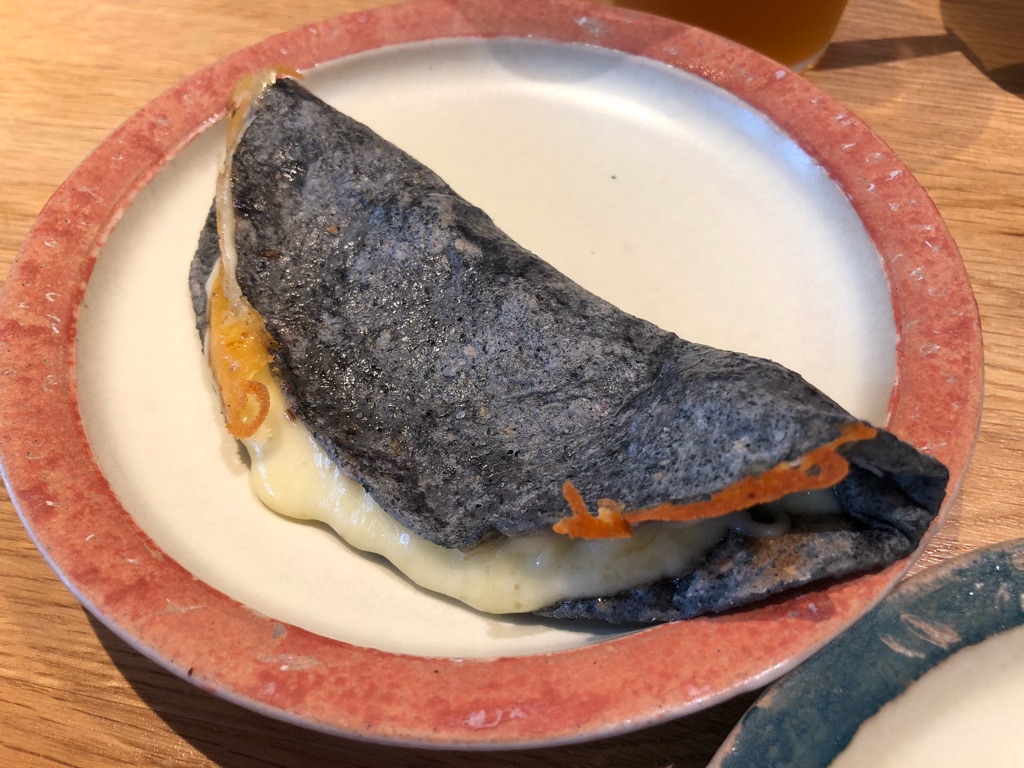 驚くのはタコスの皮ことトルティーヤ。深い青い色。