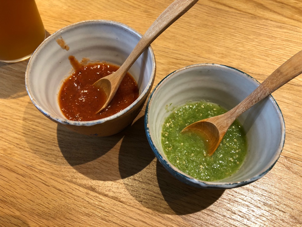 ハバネロ入りのほうが辛いかなーと思ったんですが、グリーンほうずきのほうは酸味が強く、パンチは緑のほうがある感じ。