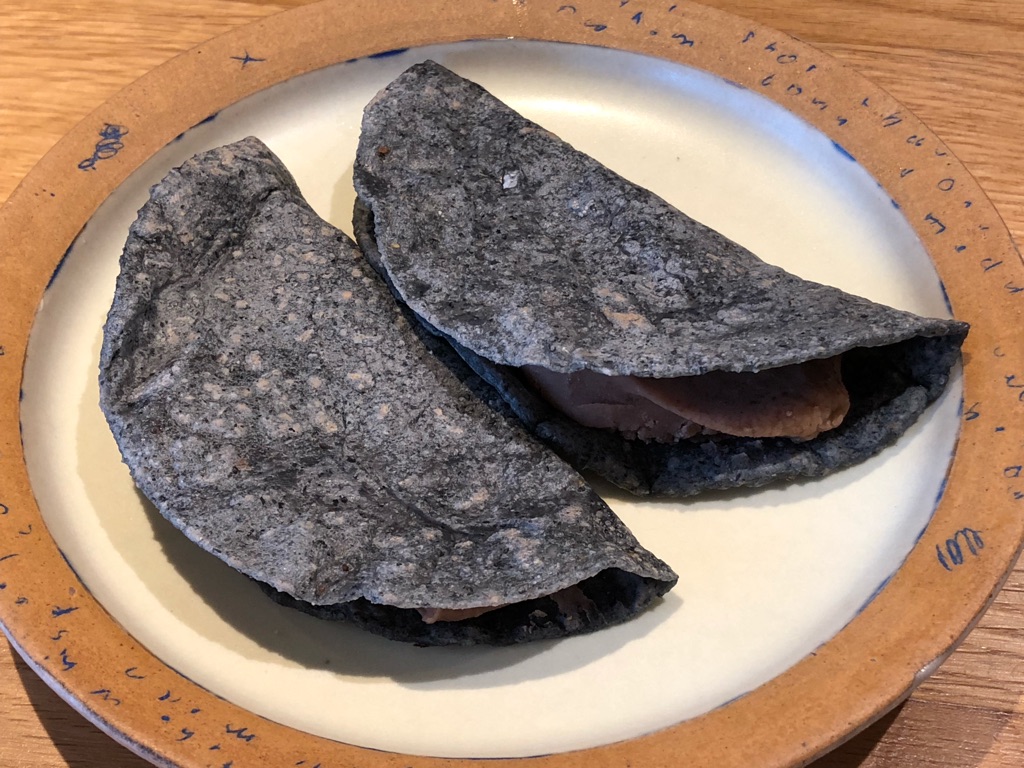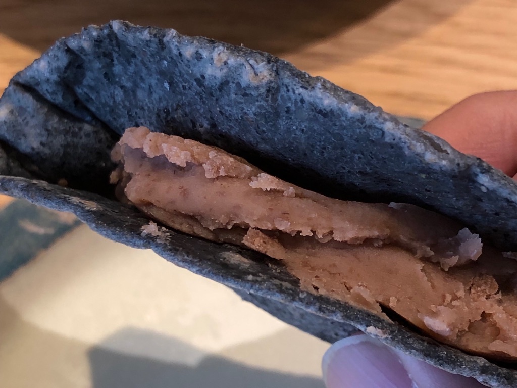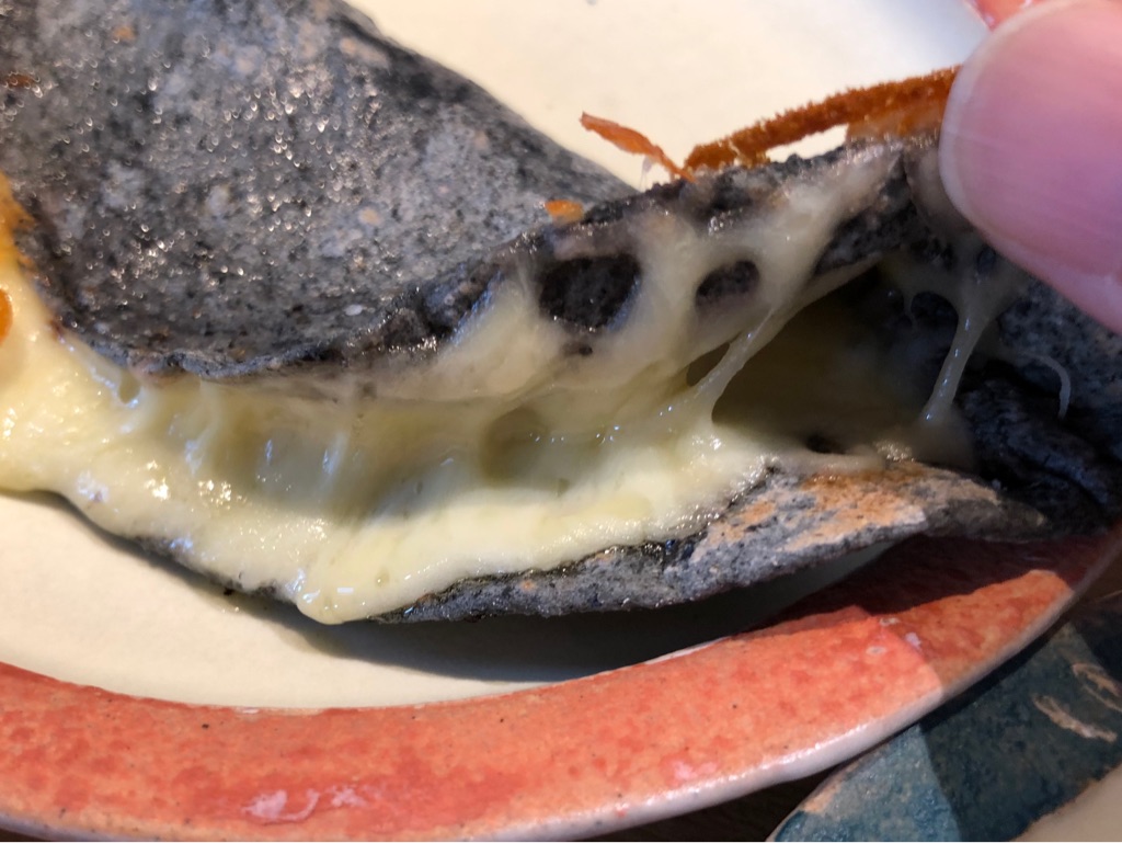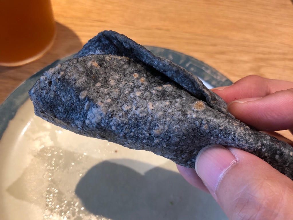 これはメキシコの在来種で、現地でも最近は使われることも減ったとうもろこし「ブルーコーン」を使ったトルティーヤなんですって。