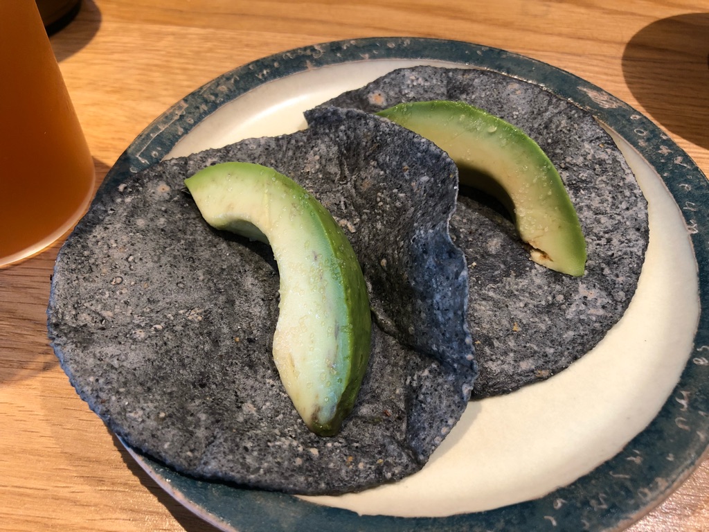 そんなトルティーヤ+まるっとアボカド。シンプルな組み合わせは、今まで頭の中で描いていたタコスとはまったく違うもの。