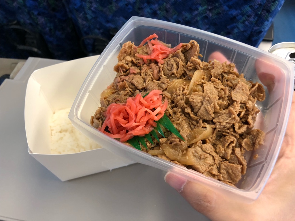 冷えた牛丼は苦手な人多いし、牛肉を使った駅弁は、そのあたりをどうにか解消しようと努力をしているものですが、この「牛丼風弁当」は牛脂がかたまって白くなる……ということはありえませんし、冷たいお弁当の具として、シンプルに牛丼風の味を再現していて、そこそこつゆだくで食が進む。