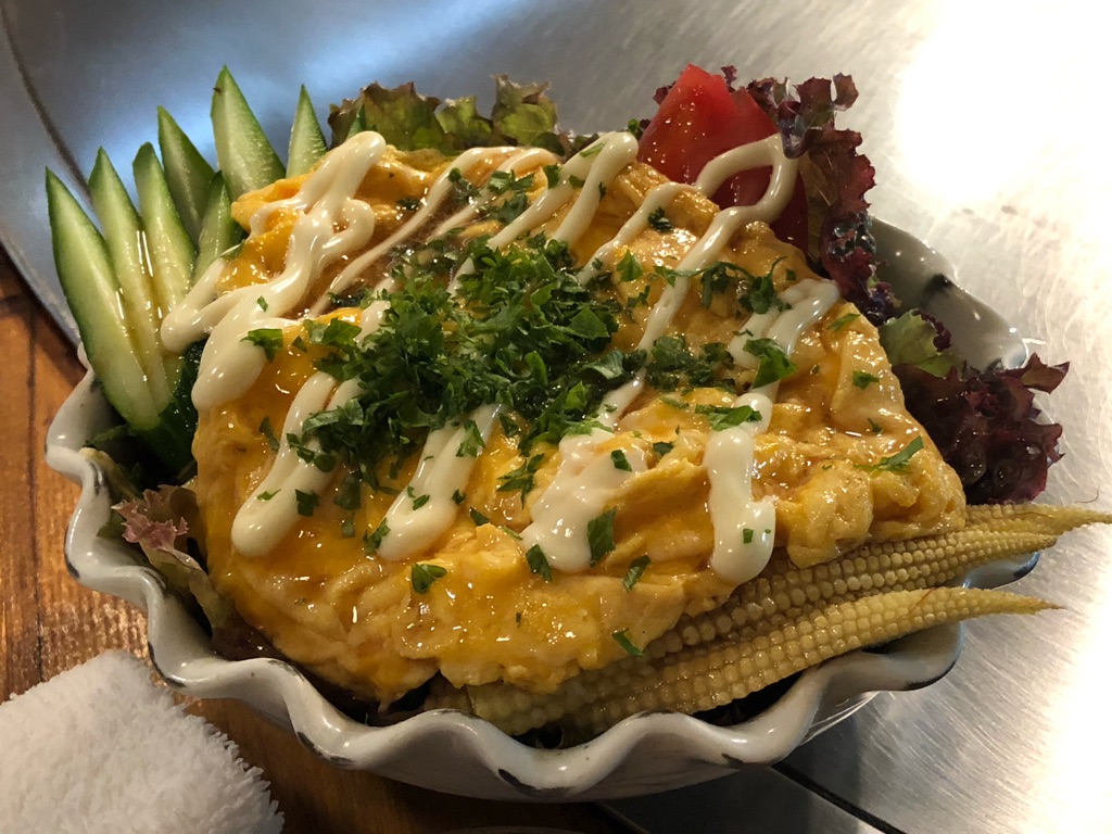 TBSラジオがかかる庶民的な赤ちょうちんの雰囲気ありながら、サラダのメイントッピングたるサンマに半熟とろとろの玉子焼きは、本格鉄板料理です。