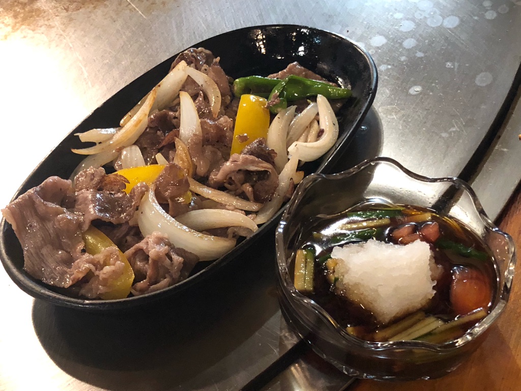 甘い脂をまとう牛肉を、香味野菜がつかったおろしポン酢で食べると、いくらでも食えそうなコンビネーション。