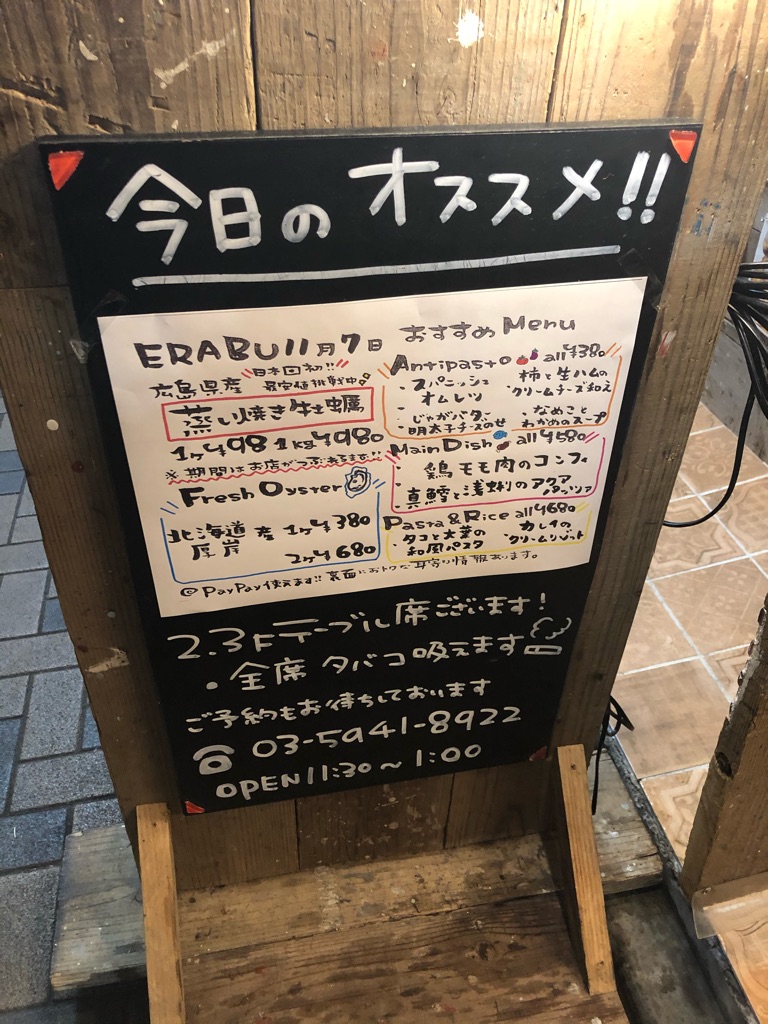 西荻窪駅から徒歩30秒。オイスターバー「ERABU」。