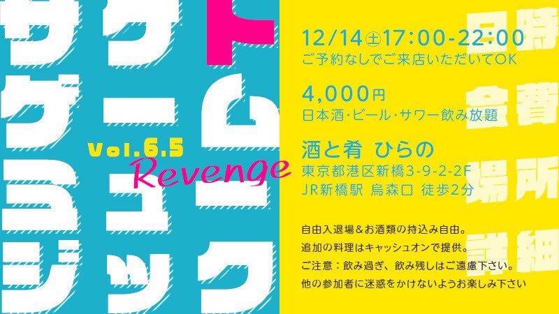 そのリベンジということで、急遽12月14日(土)17時から、第6.5回として開催されるそう。