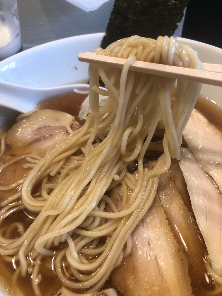 通常の中華そばに比べ少し濁りのあるスープの色合い。これがかなりあごだしの味が強く、スンと鼻に入って来る強い魚の香り。醤油味のベースに合う、日本人なら好きな味です。