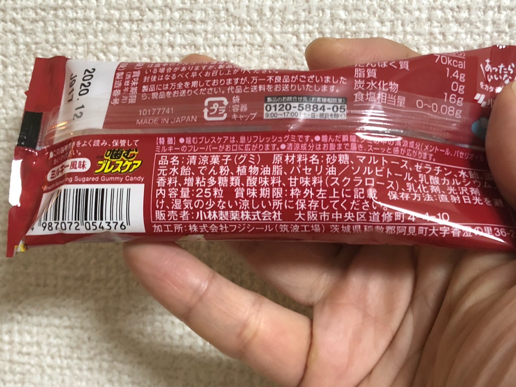 コンビニで見かけて買った「噛むブレスケア ミルキー風味」。