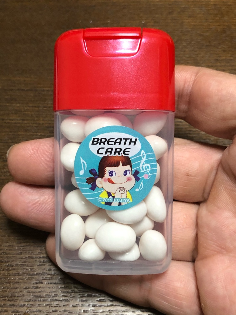 噛むブレスケアのミルキー味。こんなんおいしくて、息がどうこう言わずに普通に食うよw