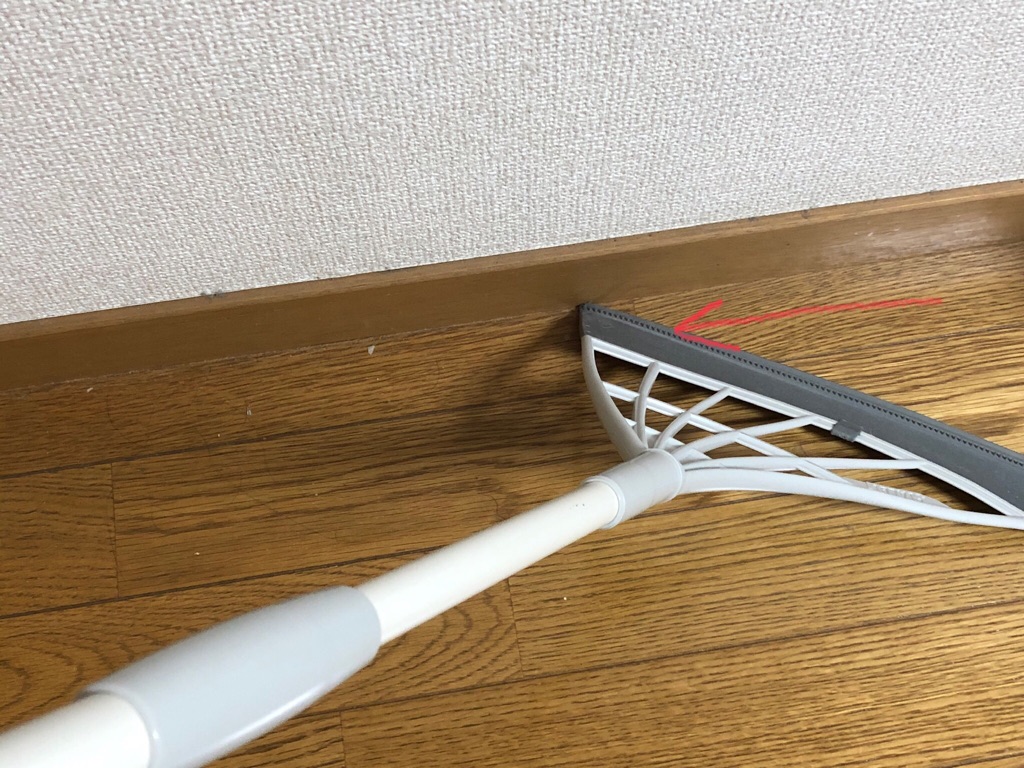 むしろ昔ながらのほうきのように、垂直の柄に、ゴムヘッドも左右対称形のほうがより使いやすいのではと思いました。
