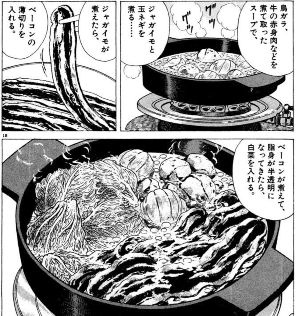 皆さんも『美味しんぼ』28巻を参考に、ぜひベーコン鍋を作ってみてね。