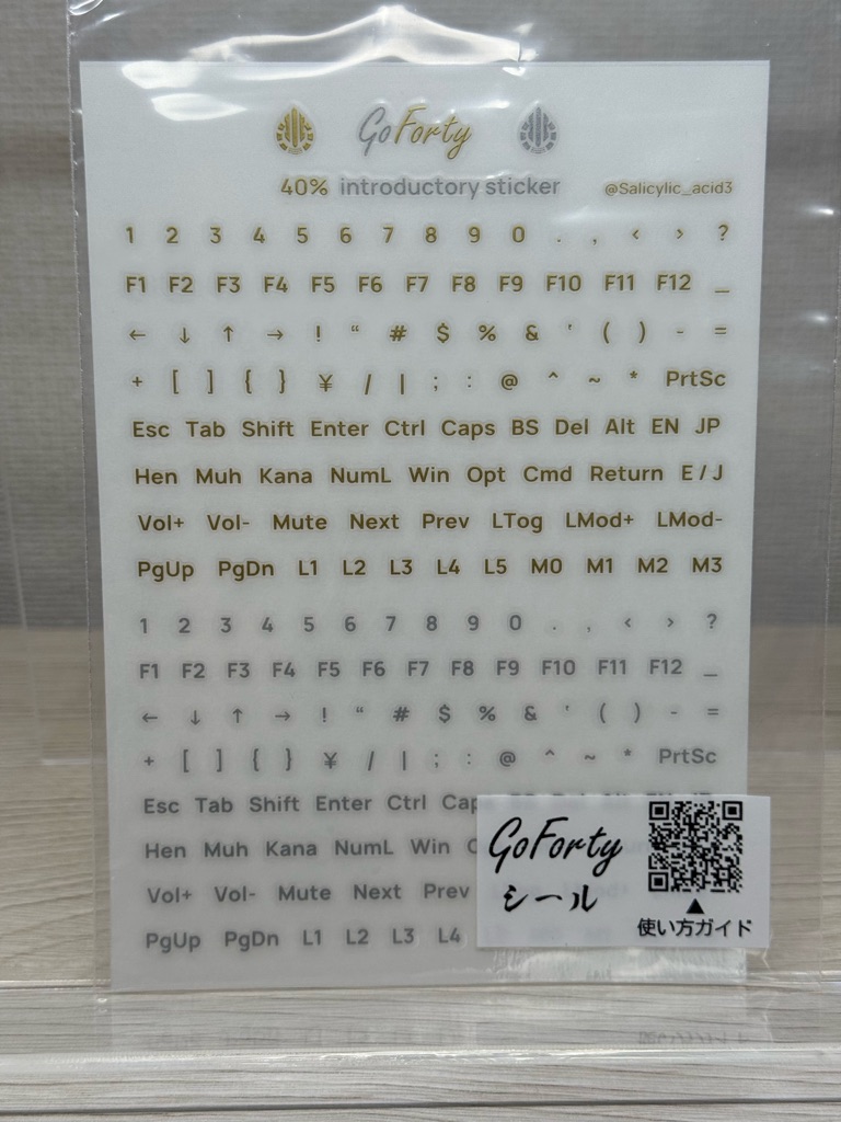 余談だが、この転写シールは同じく自作キーボード界隈で有名な「自キ温泉街販売所」のアイテム「GoFortyシール」。